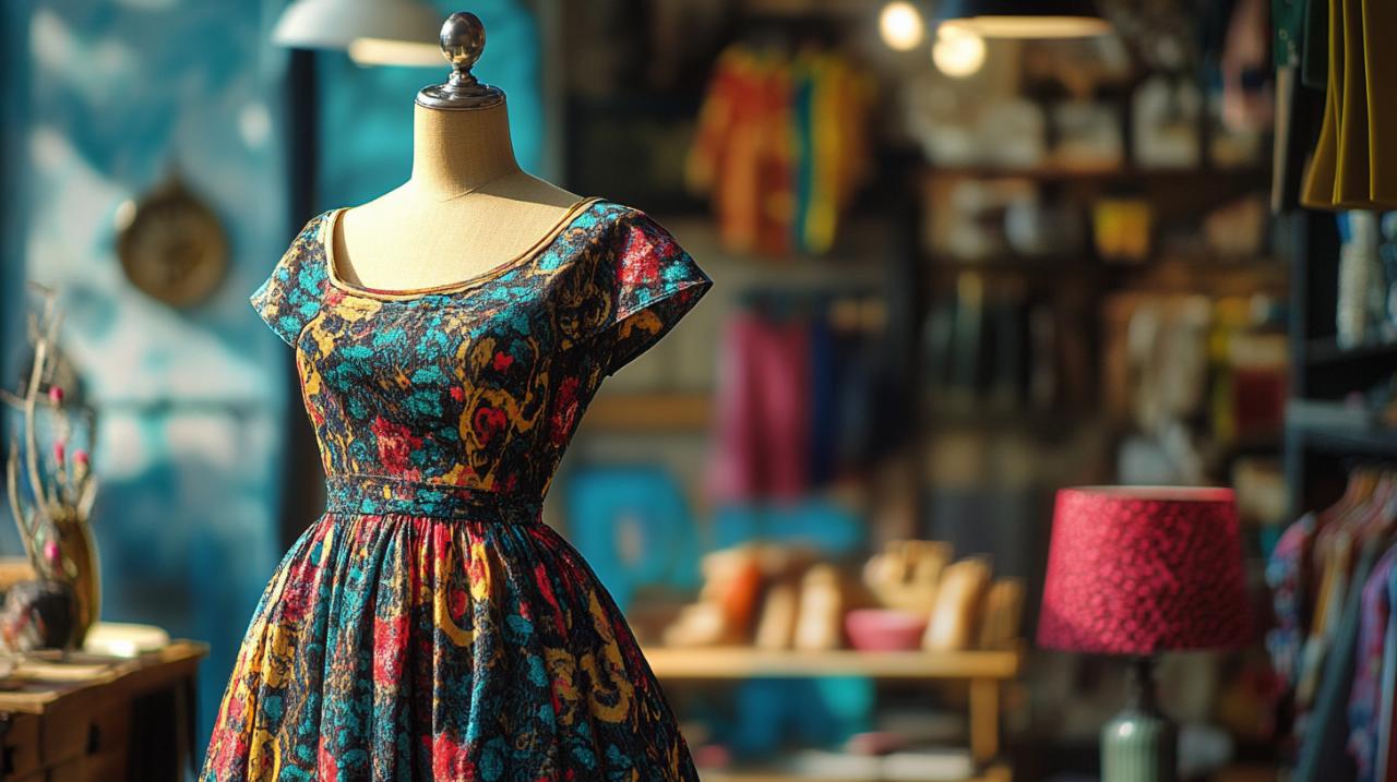 Au-delà du célèbre bardot, les robes vintage proposent une variété de décolletés qui s'adaptent à chaque morphologie. Le col carré, très présent dans les créations inspirées des années 50, structure harmonieusement le haut du corps et convient particulièrement aux femmes à la poitrine généreuse en offrant un maintien élégant. Le décolleté en cœur, souvent associé aux robes de cocktail vintage et aux tenues de soirée patchwork, sublime toutes les morphologies en créant une ligne flatteuse qui met en valeur le décolleté sans excès. Pour les silhouettes menues, le col à revers ou le col châle apporte du volume au niveau des épaules et équilibre la silhouette. Les robes fourreau privilégient souvent un décolleté rond ou légèrement en V qui affine visuellement le visage et allonge le cou, créant une ligne épurée et sophistiquée digne de l'élégance vintage.