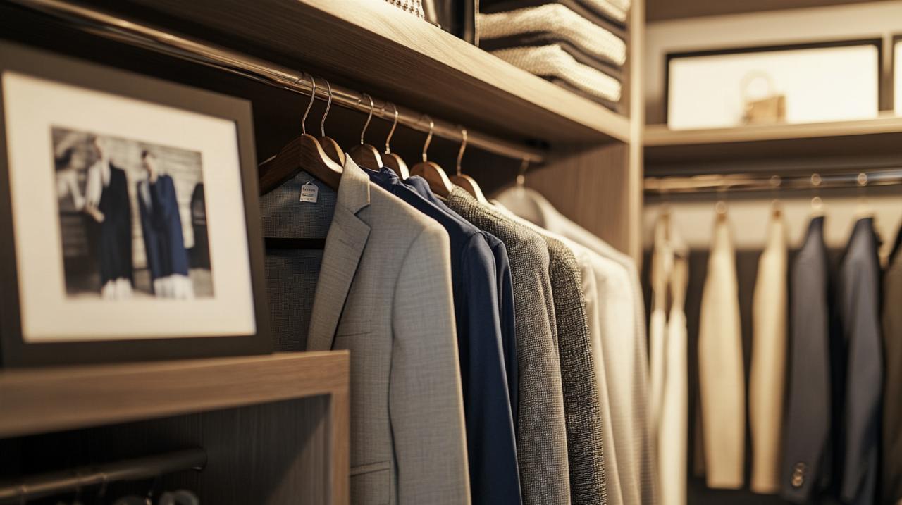 L'emplacement des photos dans votre dressing doit être soigneusement réfléchi pour garantir une harmonie visuelle et une fonctionnalité optimale. Les espaces au-dessus des étagères constituent des zones idéales, car ils restent généralement inutilisés et ne gênent pas l'accès aux vêtements. Vous pouvez également envisager de placer des cadres sur les côtés des bibliothèques ou sur les murs latéraux, en veillant à ce qu'ils soient bien visibles sans obstruer la circulation. Les portes coulissantes peuvent également servir de support, à condition de choisir des cadres légers et des fixations adaptées. L'utilisation de miroirs dans le dressing permet d'agrandir visuellement l'espace, et les placer à proximité de vos photos peut créer un jeu de reflets qui sublime encore davantage vos souvenirs.